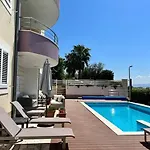 Blue Apartment With Shared Pool Split с видом на бассейн находятся в Сплите, примерно в 5 км от Выставки игрушечных лягушек Froggyland. К вашим услугам терраса, а также личный бассейн.